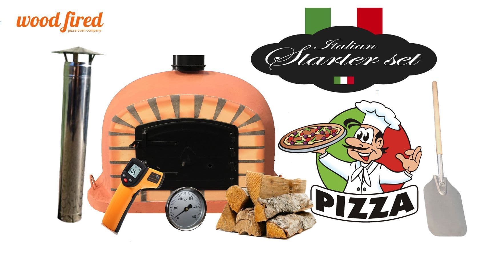 TERRACOTTA DELUXE WOOD FIRED PIZZA OVEN STARTER KIT 70CM - 120CM, ORANGE ARCH, BLACK DOOR