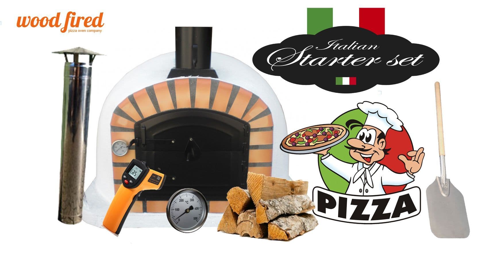 WHITE DELUXE EXTRA WOOD FIRED PIZZA OVEN STARTER KIT 70CM-100CM, ORANGE ARCH, BLACK DOOR