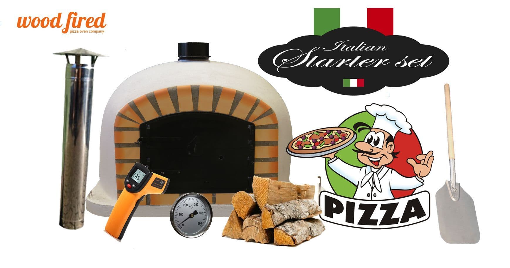 WHITE DELUXE WOOD FIRED PIZZA STARTER KIT 70CM - 120CM, ORANGE ARCH, BLACK DOOR
